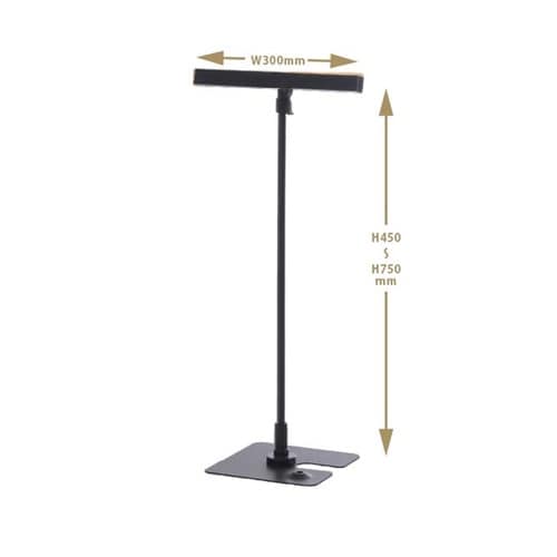 サイズ:W210×H450ー750mm | 重量:350g | 素材:ポップハンガー部・木(黒塗装)・ネオジム磁石、スタンド・スチール(黒塗装) | …