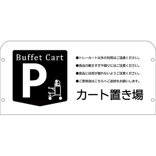 ビュッフェカートBFCK収納用のサインスタンドです。お客様にて使用されたカートの収納位置がはっきりしますので、フロアにカートが散らばるといったことを防いでくれます。 |