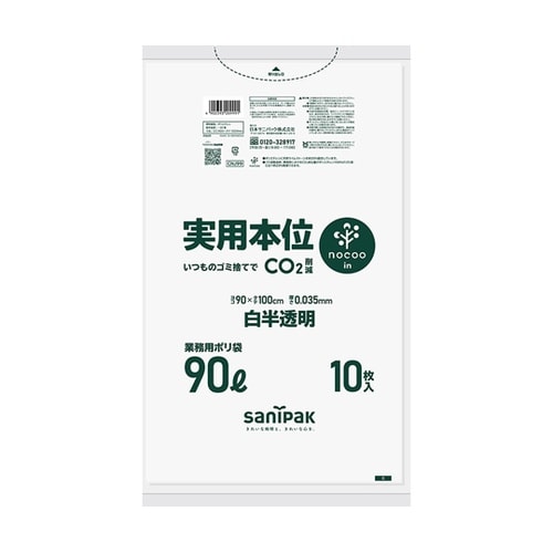日本サニパック 実用本位 nocoo in 90L 白半透明 0.035mm 1ケース(10枚×15冊入) CNJ99 1ケース A09E-4902
