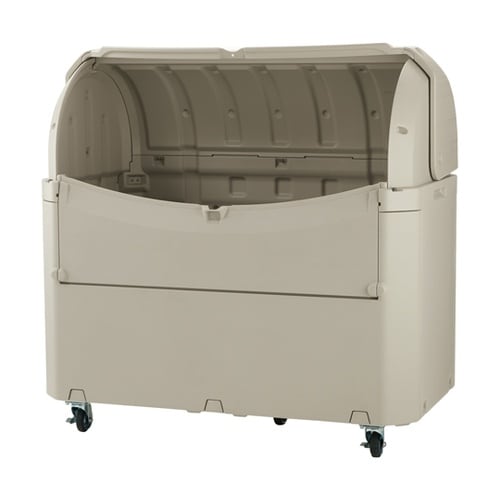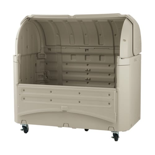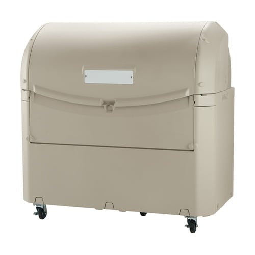 軽量スライド蓋の集積保管容器。ゴミの入った45Lポリ袋が約27個入ります。ゴミの出し入れがラクな前扉が開く仕様。 |