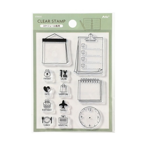 手帳やノートがもっと楽しく!予定を彩る便利なクリアスタンプ!カレンダーや手帳をもっと使いやすく、もっと楽しく!スケジュール帳やノートを彩る便利な12種類のクリアスタンプです。 |