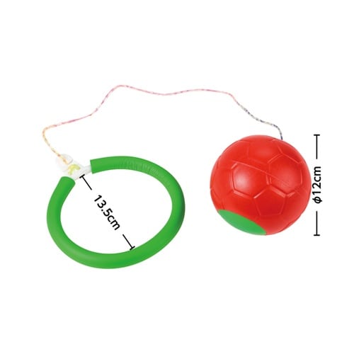 回して跳んで!遊びながら運動能力アップ!足にリングをはめてボールを回し、ジャンプして飛び越えるシンプルな運動遊びアイテムです。遊びながらジャンプ力やバランス感覚、リズム感を養うことができます。 |