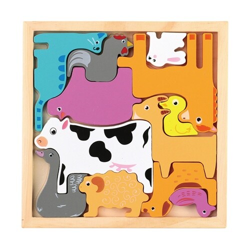 大きなピースのかんたん木製パズル!12種類の牧場にいるどうぶつをモチーフにした、あたたかみのある木製パズルです。お子さまが安心して遊べるように、ピースの角を丸く仕上げています。 |