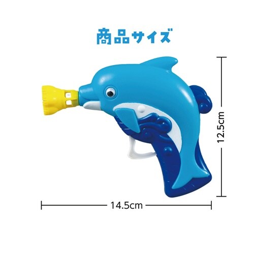 かわいいイルカのしゃぼん玉!イルカ型のかわいらしいフォルムが目を引く、トリガータイプのシャボン玉マシンです。引き金を引くだけの簡単操作で、たくさんのシャボン玉を飛ばせます。 |