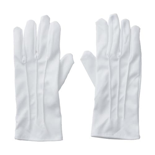 清潔感と格式を演出!応援団にぴったりのフォーマル白手袋!応援団・吹奏楽・式典など、フォーマルな場面にぴったりな白手袋です。清潔感のある白に3本ライン入りで指先までスッキリ見え、動きにメリハリが出ます。
