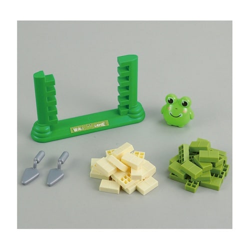 カエルを守りぬけ!ハラハラドキドキのバランスゲーム!組み立てた壁の上にカエルを乗せ、交互にコテでレンガを押し出して遊ぶブロック崩しバランスゲームです。 |