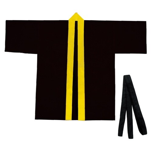 カラー不織布ハッピ(帯付) 黒(襟黄)