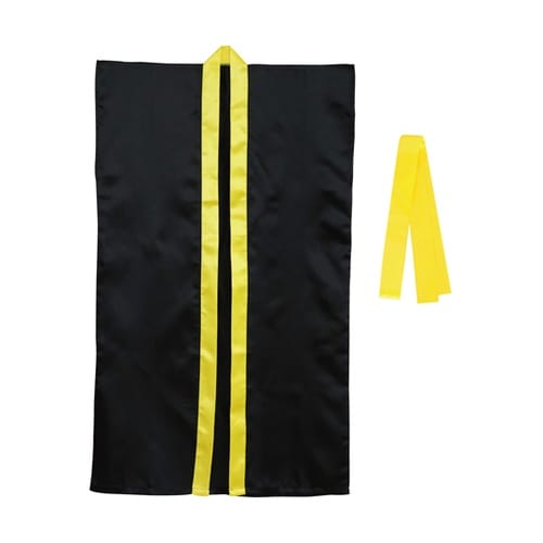 サテンロングハッピ(ハチマキ付) 黒(襟黄) M 19092 1枚