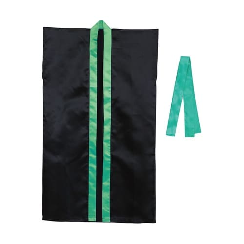 サテンロングハッピ(ハチマキ付) 黒(襟緑) M 19093 1枚