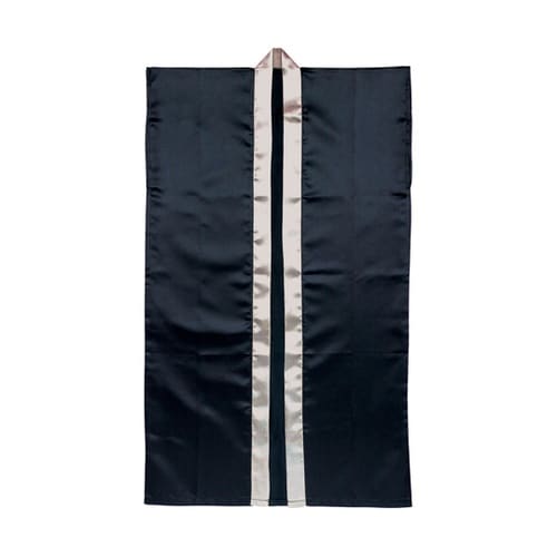 ソフトサテンロングハッピ 黒 銀襟 L