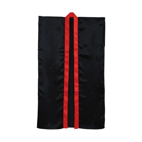 ソフトサテンロングハッピ 黒 赤襟 S