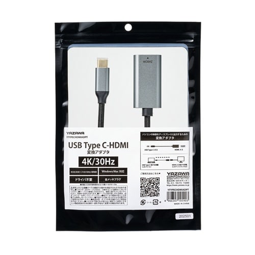 ヤザワ Type−CーHDMI変換アダプタ 30Hz YTYPECHDMIADPT 1個 A09E-5988