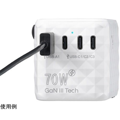 本体寸法:W78mm×H50mm×D53mm | 本体重量:約183g | カラー:ホワイト | 材質:本体/PC、導体/銅 | プラグ形状:A・C・…