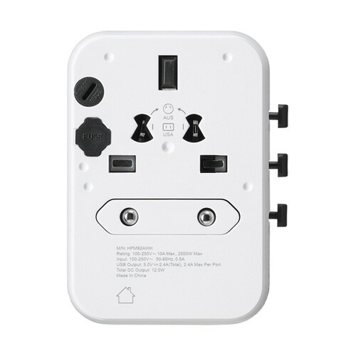 これ一台でタイプA、C、O、BF、SEの5タイプのコンセント形状に対応!電圧も250V−10A(1個口合計)まで対応。世界主要な国々で使用する事が出来ます。※電圧の変換はできません。 |