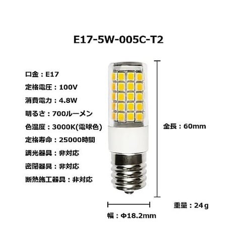 東京メタル工業 50W相当 LED電球 口金E17タイプ E175W005CT2 1個 A09E-8079
