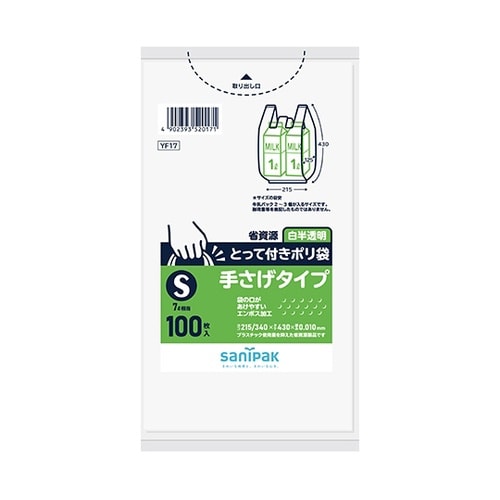 日本サニパック とって付きポリ袋 エンボス S 白半透明 0.010mm 1ケース(100枚×20冊入) YF17 1ケース A09E-8786