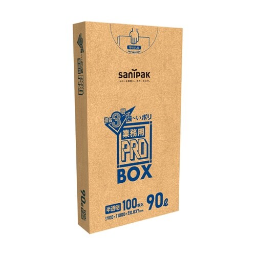 日本サニパック 業務用 PRO 3層 BOX 90L 半透明 0.037mm 1ケース(100枚×3冊入) PA93 1ケース A09E-8797