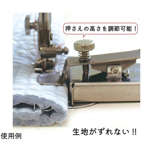 押さえが付いたミシン用マグネット定規です。押さえ部分の高さは調節可能なので薄地・厚地に対応。生地がずれず、きれいに縫うことが出来ます。 |