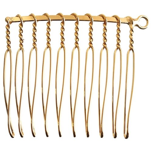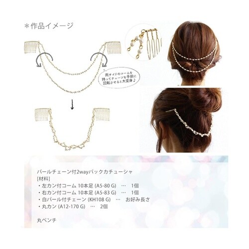 カン付きなのでビーズやパール、チェーンなどをつなぐことが出来るコームです。お好みのモチーフを付けたり、バッグカチューシャの留め具としても人気です。 |