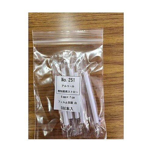 シバセ工業 アルコール検知器用ストロー 6mm×7cm ストレート フィルム包装 白 1ケース(500本×20箱入) 251 1ケース A09F-0537