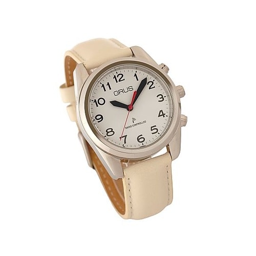 音声時計 ボイス電波 トーキングウォッチ イタリアンオイルレザー アイボリー GRS003−06 1個