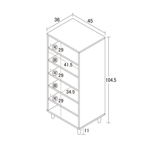 靴は最大12足収納可能。靴の高さに合わせて棚の位置を変えることができます。高さ29cmまでのショートブーツなども収納できます。背面は化粧仕上げ。 |