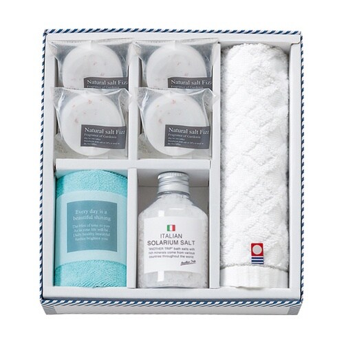 その他仕様:バスソルト(イタリアン)海塩(180g)×1、ソルト・フィズ(40g)×4、今治ウォッシュタオル(28×30cm)×1、マイクロファイバー…