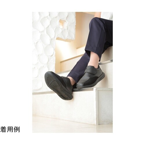 履き口が広く開き、着脱が簡単です。厚みのあるフロート状のソールが歩行時の衝撃を分散し、足・膝・腰の疲労軽減につなげます。サイドクールメッシュとクッションエアースルーインソールによりムレ感を抑えます。 |