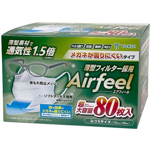 ヨコイ エアフィールマスク メガネ用 ふつう 1ケース(80枚×24個入) FG80BM 1ケース A09F-0792