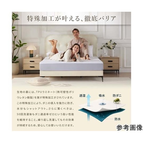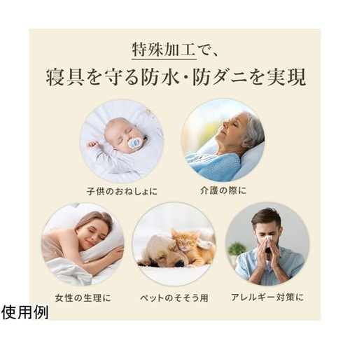 防水・防ダニ・透湿・ストレッチの機能をあわせ持ったボックスシーツ仕様のマットレスプロテクターです。水蒸気は通すのに、汗・血液等の液体は通しませんので、蒸れを軽減できます。