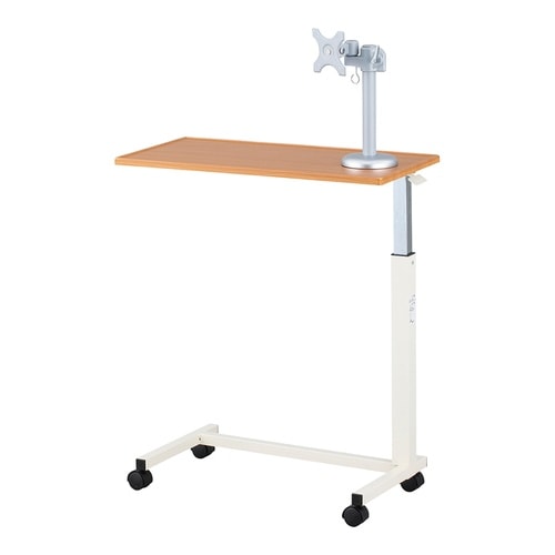 モニターを取り付けられるアーム付きのベッドサイドテーブルです。モニターは上下左右のお好きな方向に向きを変えられます。天板は任意の高さに調整が可能です。 |