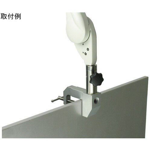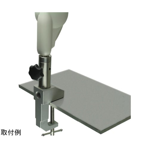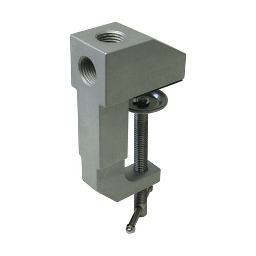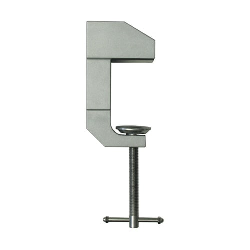 クランプ上面と横面の2方向には9/16インチのネジ穴が開いており、サポートアームをねじ込んで止めることが出来ます。サポートアームを取り付けて机やベッドの枠に取り付けできます。 |