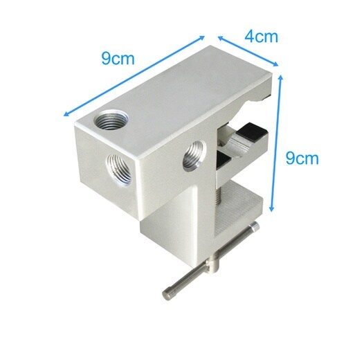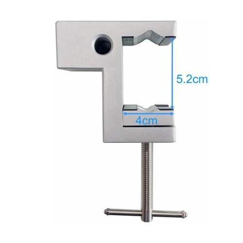 クランプ上面・側面・前面の3方向には9/16インチのネジ穴が開いており、サポートアームをねじ込んで止めることが出来ます。サポートアームを取り付けて机、ベッドの枠、支柱に取り付けできます。 |