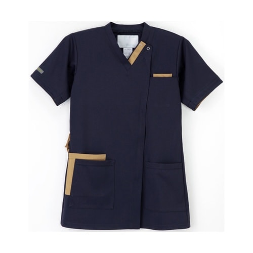 フロントファスナー開きで着脱しやすい男女兼用のスクラブです。