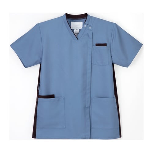 サイドファスナー開きの男女兼用スクラブです。バックスタイルの両サイドに配したニット素材が動きやすさと涼しさをご提供します。適度なゆとりのあるシルエットになっています。