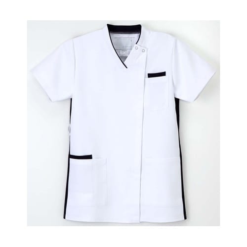 サイドファスナー開きの男女兼用スクラブです。バックスタイ ルの両サイドに配したニット素材が動きやすさと涼しさをご提供します。適度なゆとりのあるシルエットになっています。