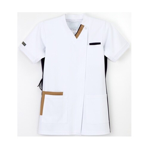 フロントファスナー開きで着脱しやすい男女兼用のスクラブです。