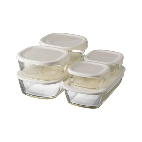 色と匂いがつきにくい耐熱ガラス製角型コンテナ 6個入りです。 |