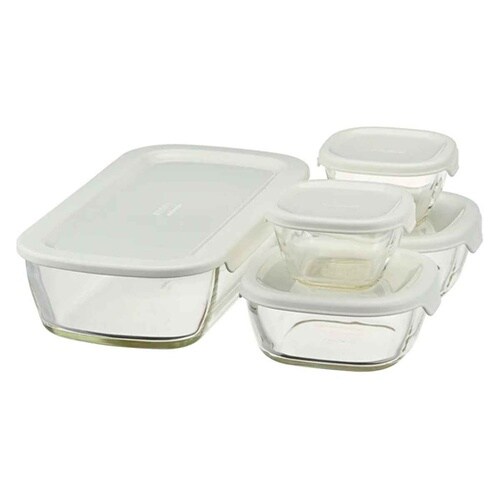 HARIO 保存容器 110mL 250mL 900mL スタッキング耐熱ガラスコンテナ+ミニ角小鉢 5個セット KSTL−3508−OW 1セット A09F-1391