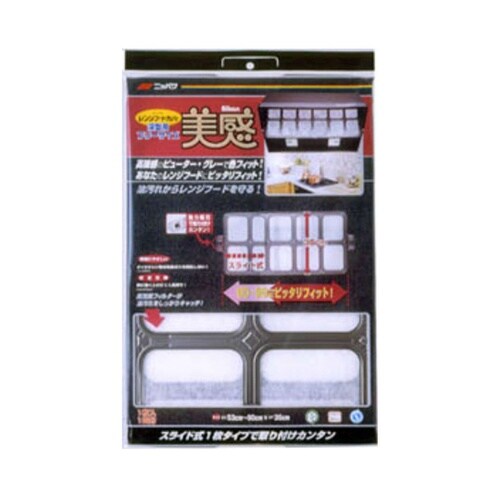 機種に合わせて左右に寸法調整可能なスライド式レンジフードカバーです。強力磁石付きでワンタッチ装着ができます。どんな色のレンジフードにも違和感なくマッチするピューター・グレーカラーです。 |
