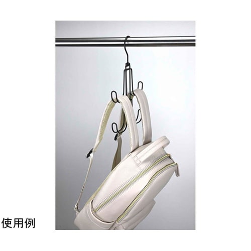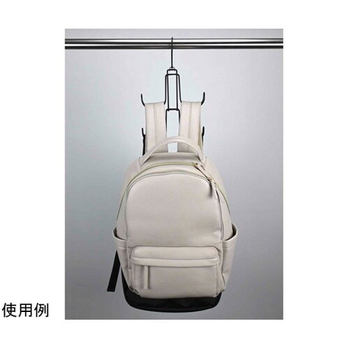 リュック2個を省スペースで掛けて収納できるリュックハンガーです。2個掛けの場合は8kgまで掛けられる、丈夫なスチール製です。肩掛け部分をしっかりとホールドしてくれるずれ落ちにくい仕様です。 |