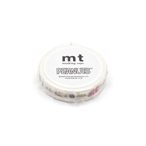 手でちぎって、貼って、はがせるmt(エムティー)シリーズのマスキングテープです。スヌーピーと仲間たちがちりばめられたかわいいデザインです。 |