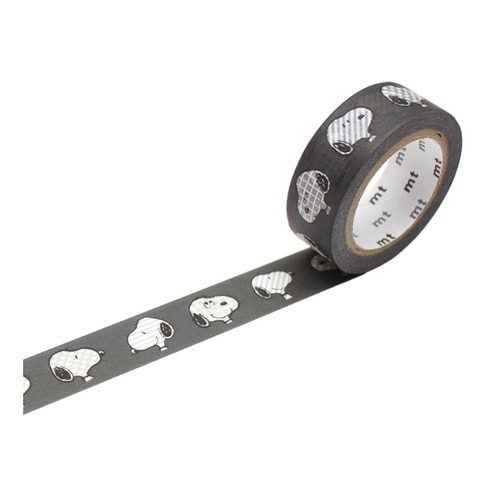 手でちぎって、貼って、はがせるmt(エムティー)シリーズのマスキングテープです。スヌーピーと仲間たちがちりばめられたかわいいデザインです。