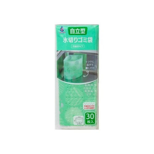 シンクに広げて置くだけで自立する水切り袋です。爽やかなミントグリーンで、生ごみが見えにくくなっています。丈夫なポリエチレン製で水気をしっかり絞れます。生ごみを手軽に捨てられます。 |