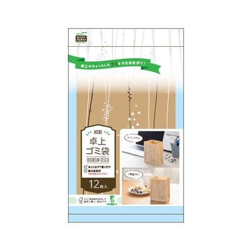 自立するので、広げて置くだけでゴミ箱がわりになります。オフィスや食卓などのちょっとしたゴミの処理に便利です。インテリアとも馴染む、シンプルでおしゃれな印刷(アクアリウム柄)が入っています。 |