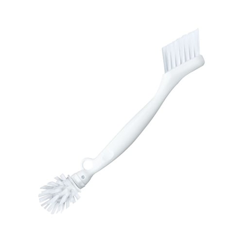 ハンドル両端の2種類のブラシが浴室の様々な箇所の汚れをかき出します。スリムブラシは、寄せ植毛により細部にしっかり届きます。寄せ植毛により毛先が広がりにくくなっています。 |