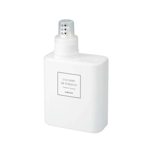 ホワイト無地のシンプルな詰め替え用ボトルです。液体洗剤、柔軟剤、液体漂白剤に適した容器を押すだけで計量できるタイプです。何回も詰め替える手間を省ける容量約1000mLです。 |