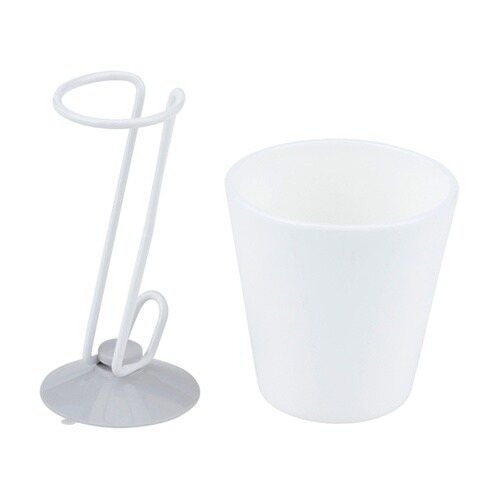 置き型でも壁面でも使えるうがいコップとスタンドです。吸盤でしっかり固定できます。汚れやサビに強いダブルコーティングです。シンプルで使いやすいコップです。 |