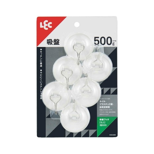 耐荷重500gの吸盤タイプのミニフック6個入りです。キッチンなどでの使用に適しています。サビにくいステンレス金具を使用しています。 |