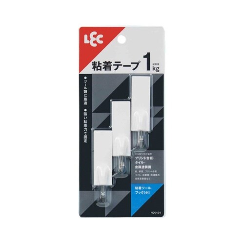 ツール類がかけやすい、粘着ツールフック3個入です。粘着テープで取り付け簡単です。耐荷重1kgです。 |